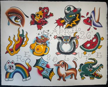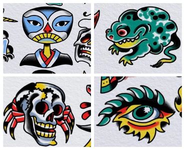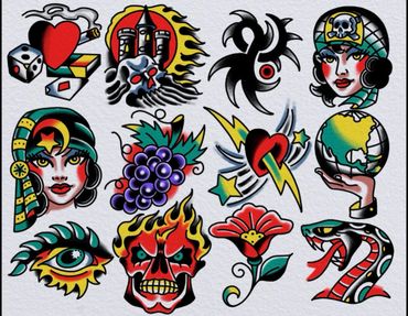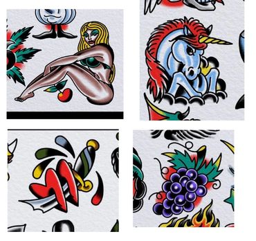Designs will be done in color as shown on the flash sheet or in black & grey. Colors can NOT be changed. The black and grey designs can be done in color.
