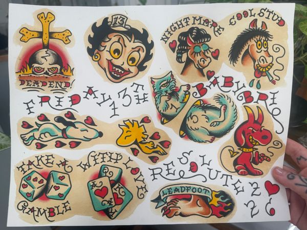 Feb Fri the 13th Flash Days- by appointment only! Fri 2/13 AND Sat 2/14! Dan and Bri are now booking. Designs are $100 each. $50 deposit is required when booking. Deposit will be applied to the final cost and is nonrefundable. We accept Venmo, Cash App, Paypal or cards for the deposit. No coverups. No design modifications. Arms and legs only: no elbows or knees. Designs can be done in black and grey. Artists would prefer to keep colors as shown. Text 518-635-0099 to book! Unfortunately, Steve is out of town and won't be tattooing at this event but will be tattooing during our March Fri the 13th! Stay tuned for designs and details for next month!